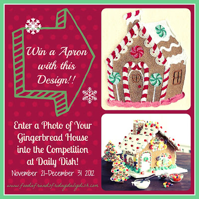 | Sweet Heat Chefs ~ Rosemary Garlic Infused Oil This and That ~ Shortbread Thumbprint Cookies Walking on Sunshine ~ Homemade Coloured Sugar Did you make a Gingerbread House this year? Remember to link it up at the Daily Dish... You could win an apron with a gingerbread applique.. ![]() You do not have to be a blogger to enter Just ignore the URL. Enter at the Daily Dish or on my blog. |